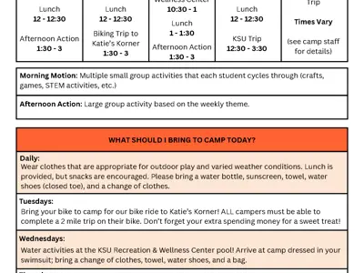 What to Bring: Water activities at Kent State to start the day, please send your camper in their swimsuit and don't forget a towel and change of clothes!